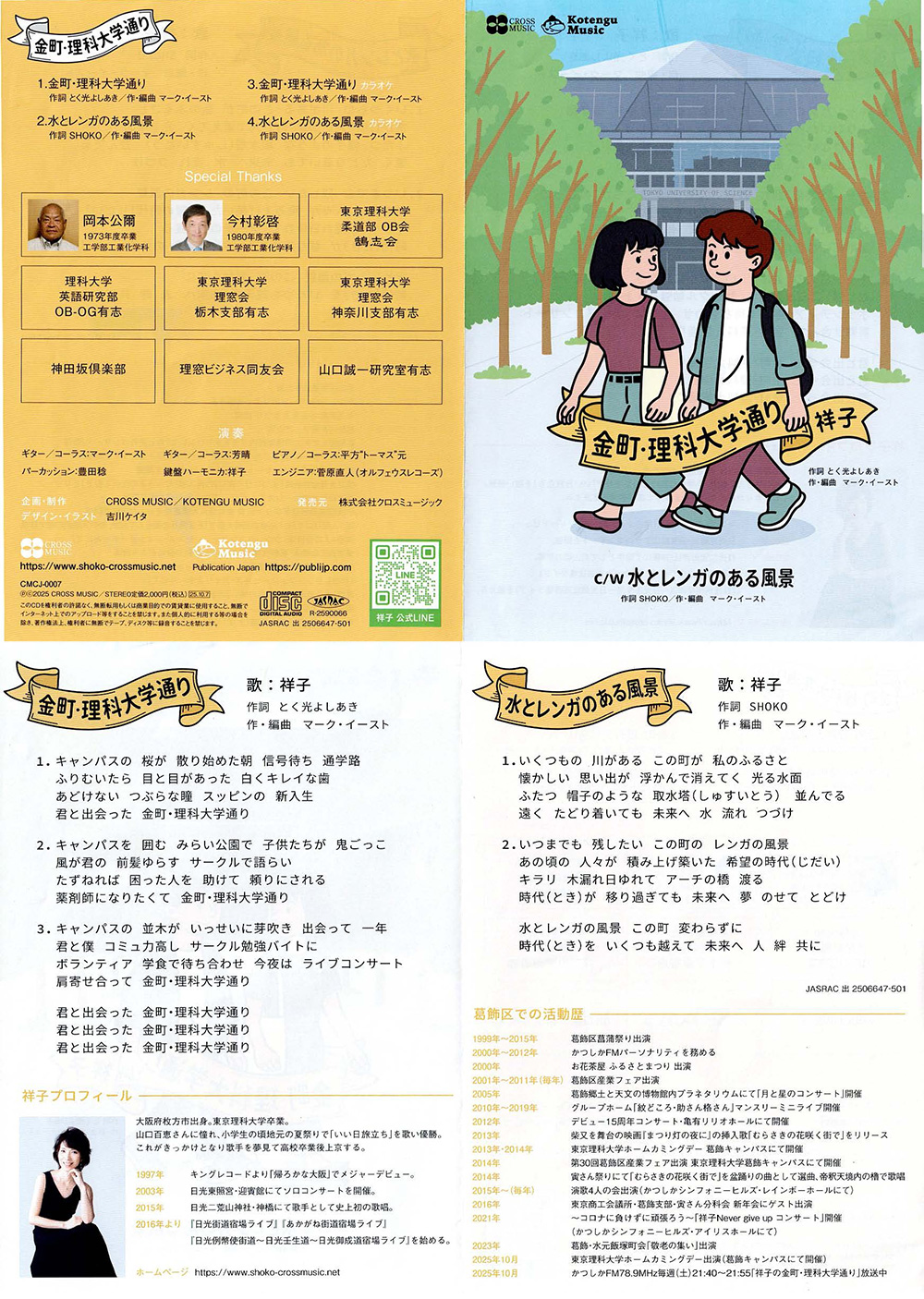 タイトルは「金町・理科大学通り」で、知人の作詞家に作詞をお願いし、OGの祥子さんに歌ってもらいました。